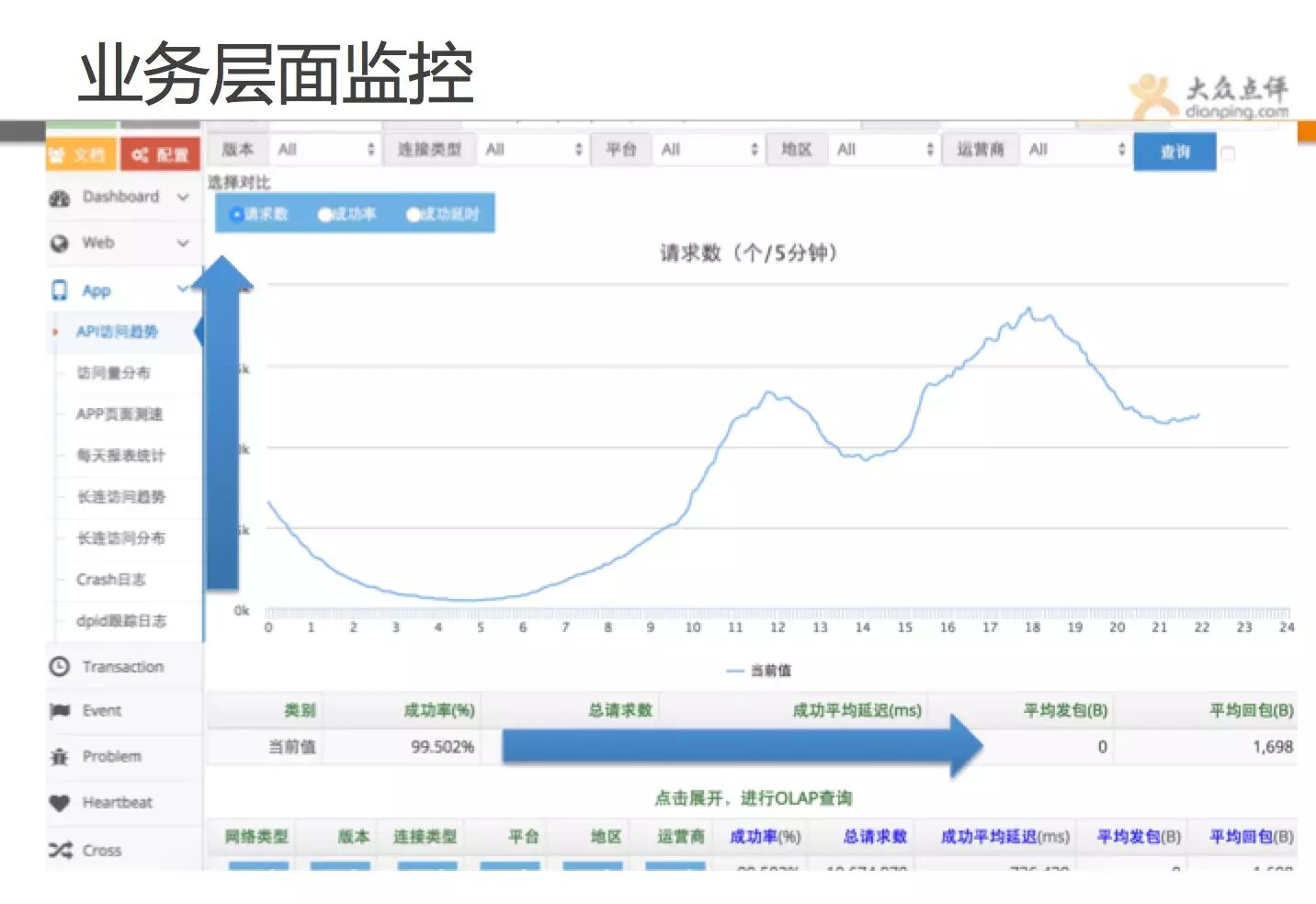 业务层面,如团购业务每秒访问数,团购券每秒验券数,每分钟支付、创建订单等(cat)。