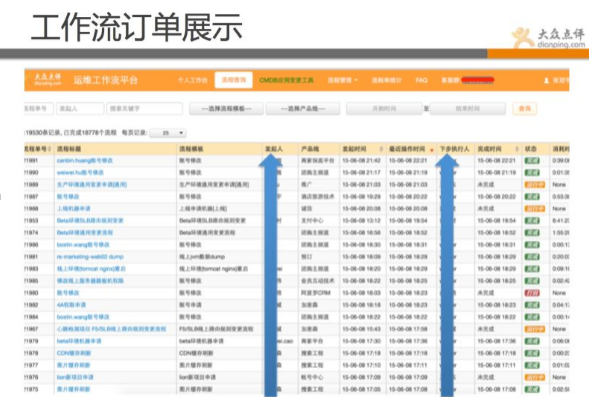 经过长时间的推广,点评现在98%以上变更都是通过工作流平台完成的,所有变更全部有记录,做到出问题时 有法可依,违法可纠。