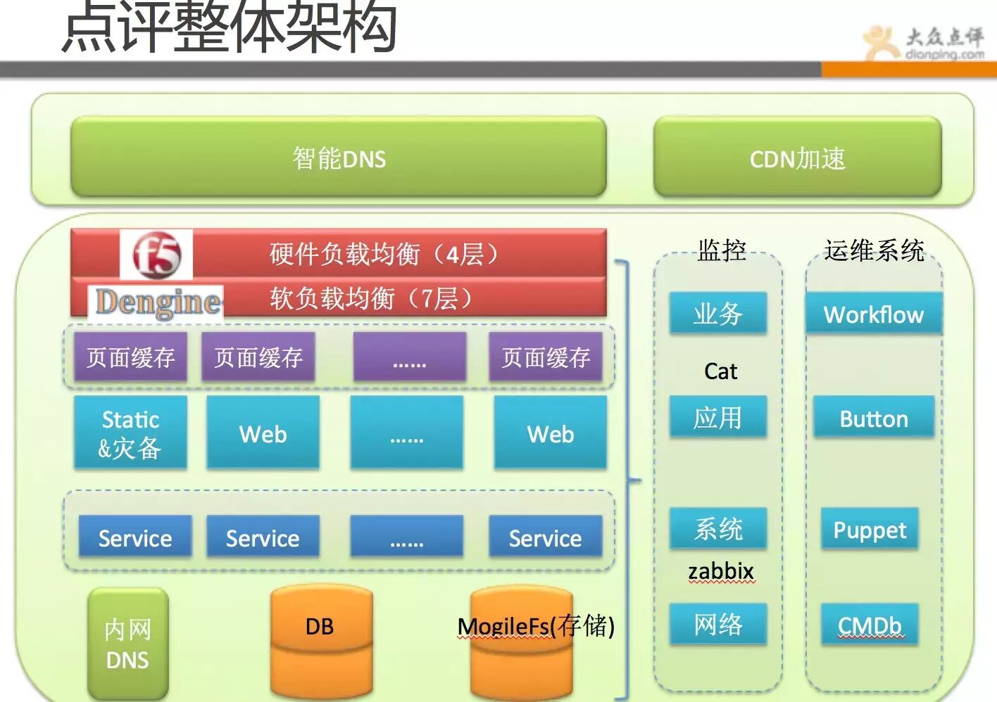 点评的整体架构,还是跟多数换联网公司一样,采用多级分层模式,我们继续来详细看下点评整体架构。