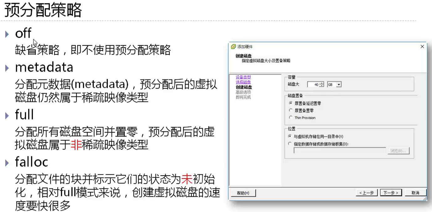 preallocation Preallocation mode (allowed values: off, metadata, falloc, full) #指定镜像文件的预分配模式