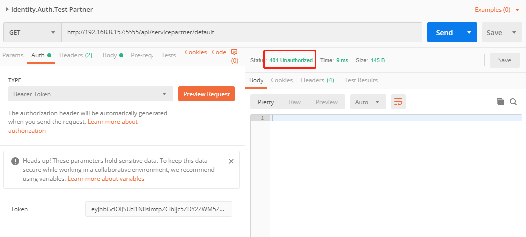 可以看到请求servicepartner时返回了401 Unauthorized,测试通过。