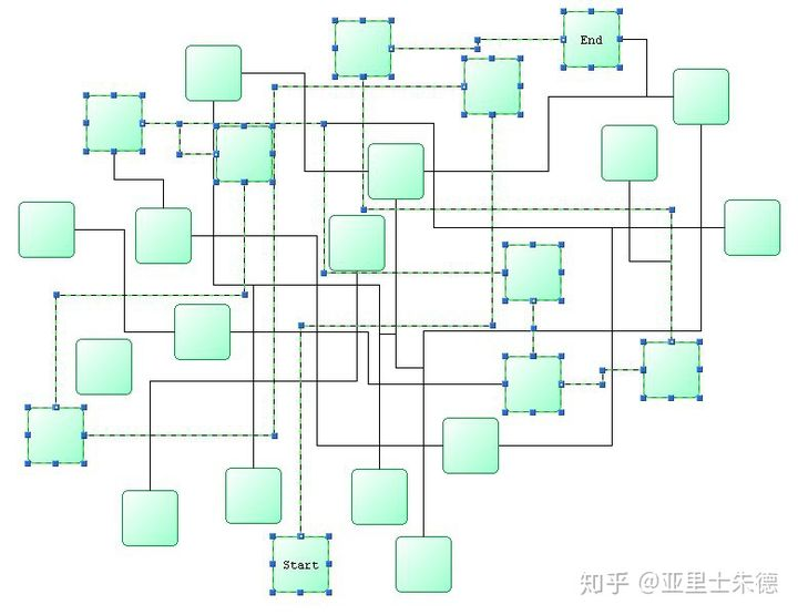 图形可视化是mxGraph的主打功能,这个很好理解,就是把一些抽象的概念用图形来表示,比如常见的流程图、思维导图、实体关系图等。 需要注意的是mxGraph所绘制的图主要是由“点”(也包括矩形、圆形这类基本形状)和“边”组成的,下图是官方提供的一张样图。