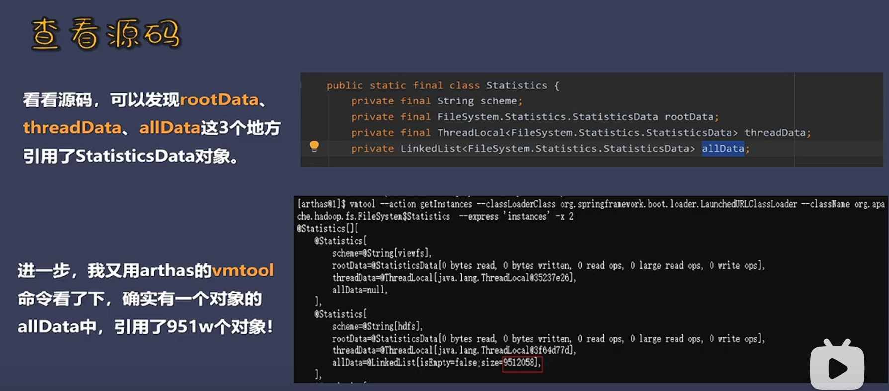 【视频笔记】线上JVM堆内存报警,占用超90%!hadoop statisticsData内存泄漏