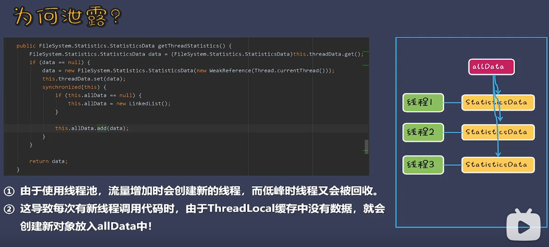 allData一直往里塞(threadlocal中没有数据时, thread可能是申请、释放, 即旧线程回收,又建新线程)