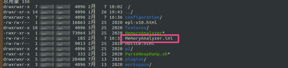 - 线上dump文件一般都有5,6G的大小,mat分析工具很有可能打不开,因为内存不足导致软件崩溃,这种情况我们得手动修改配置文件{{MemoryAnalyzer.ini}}增加软件的堆内存大小;