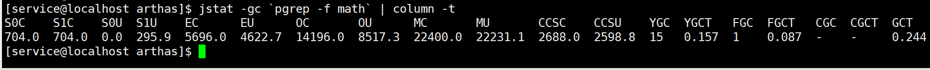 [service@localhost arthas]$ echo $((3628224 /1024 /1024))