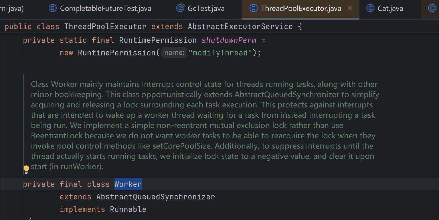因为我们的线程里面也有一个我们的内部类,只要把我们的内部类变成静态的内部类,我们就把这部分(worker -> ThreadPoolExecutor)的引用切断了