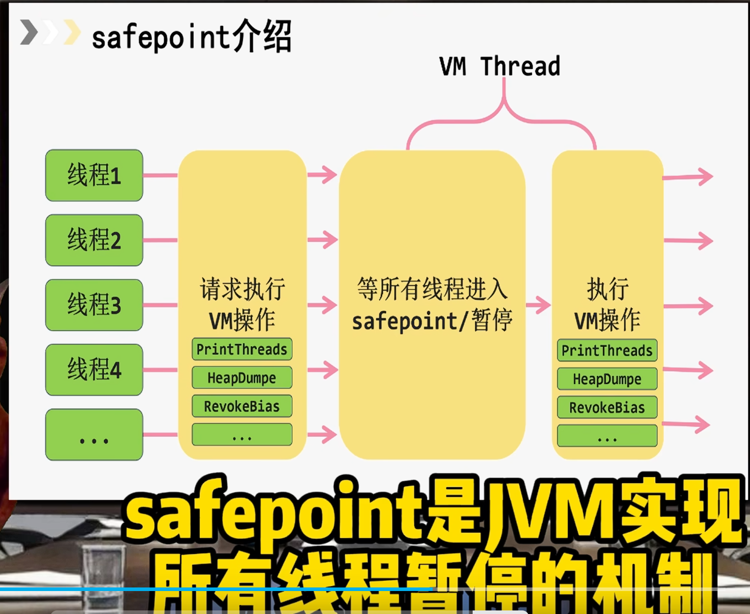 safepoint是jvm实现所有线程暂停的机制,所有线程进入safepoint后,就可以执行vm操作了