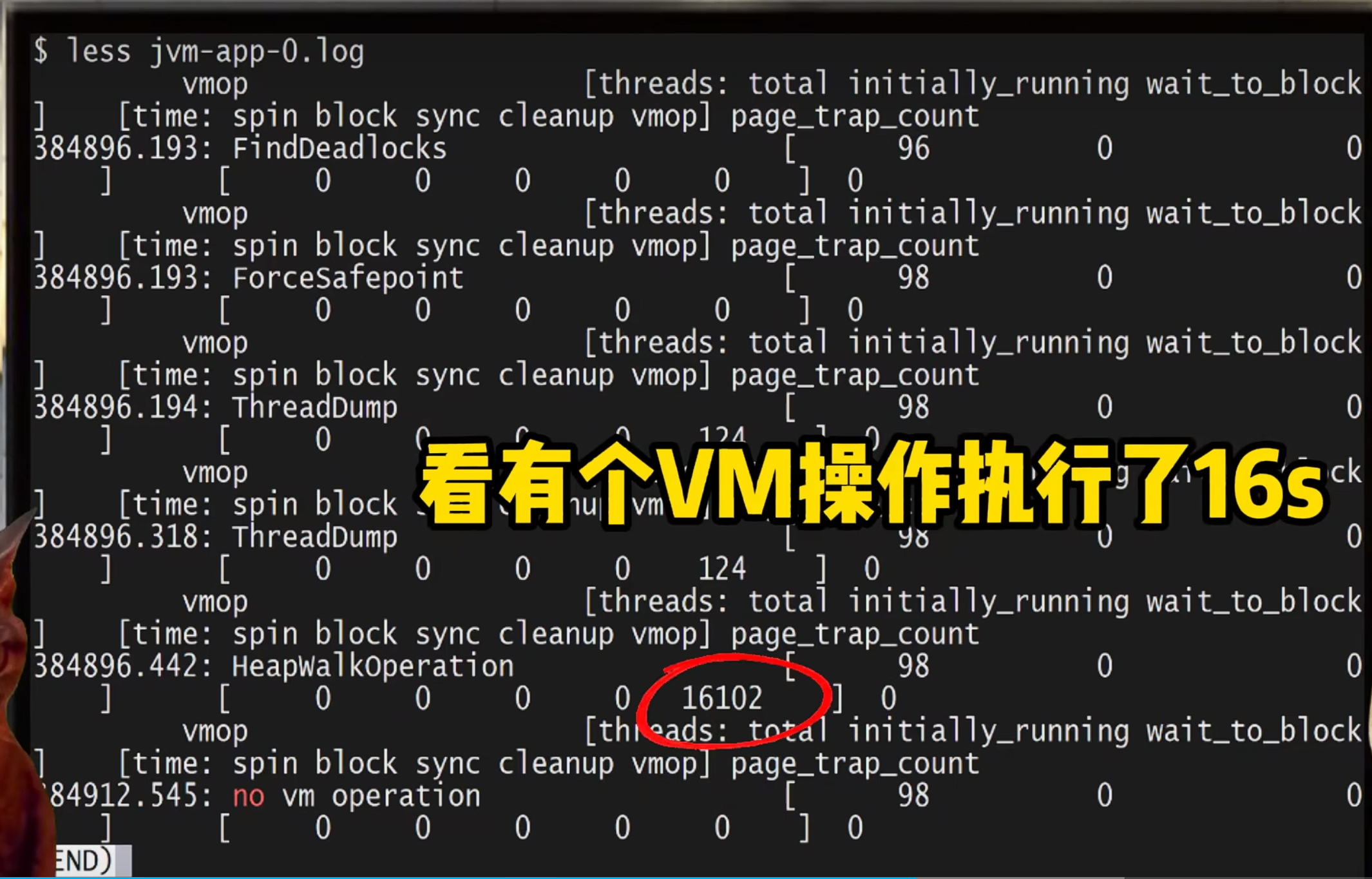 服务又挂了,看下safepoint日志,看有个vm操作执行了16s,触发的vm操作叫HeapWalkOperation