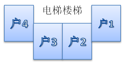 户2、3俗称“中间户”,因为公共空间的遮挡,南北不通透,入户那个方向采光差。