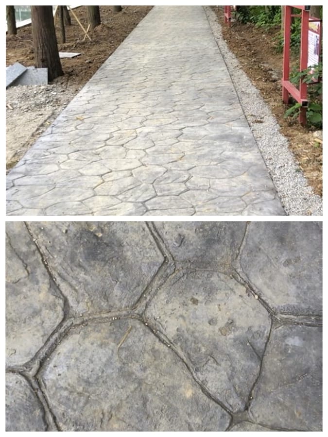 可是反观江苏句容和它西边的南京,却把平整的健身步道铲除,修起了凹凸不平的“景观”步道: