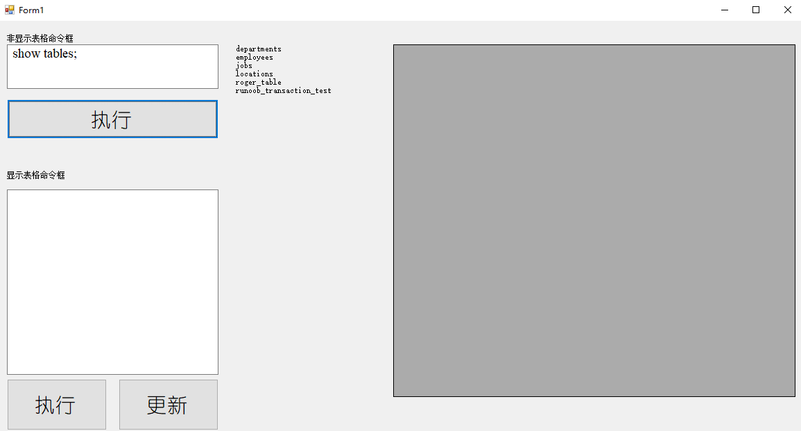 在非显示表格命令框中输入use myemployees; 点击执行