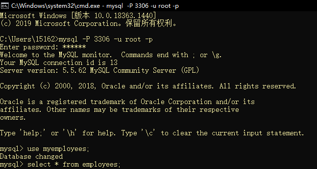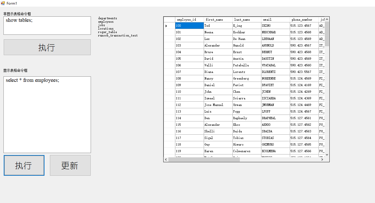 在显示表格命令框中输入select * from employees; 点击执行