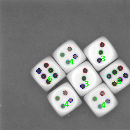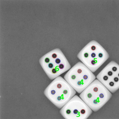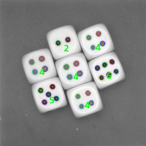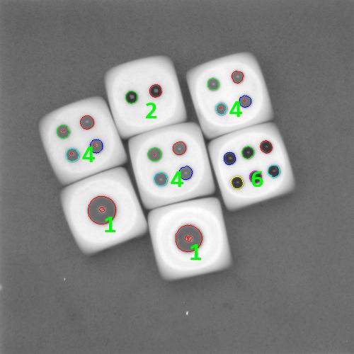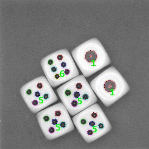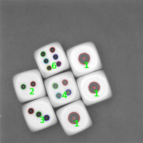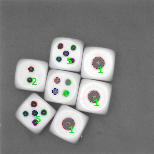 那么,本文就把这种用Halcon编写的实时识别色子点数的算法分享出来