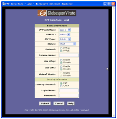 这里显示的是一组连接所使用的Interface(接口)名称(一般为aal5-0)及其相应的设置,这是ADSL MODEM的出厂默认值,我们一般无需修改,如果在后期操作中误删除了相关的信息,我们可以依据此设置信息重新设置即可。
