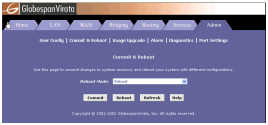 我们还要到Admin设置中保存此设置,否则在系统重新起动后此设置就会失效。依次选择Admin标签->Commit&Reboot项,在Reboot Mode下拉框中选择Reboot(如图5),点击Commit(提交)按钮,十几秒钟之后ADSL MODEM会将此设置保存起来并自动以此设置重新启动,以后不管是重起、还是关机,ADSL MODEM的这个设置都不会丢失。