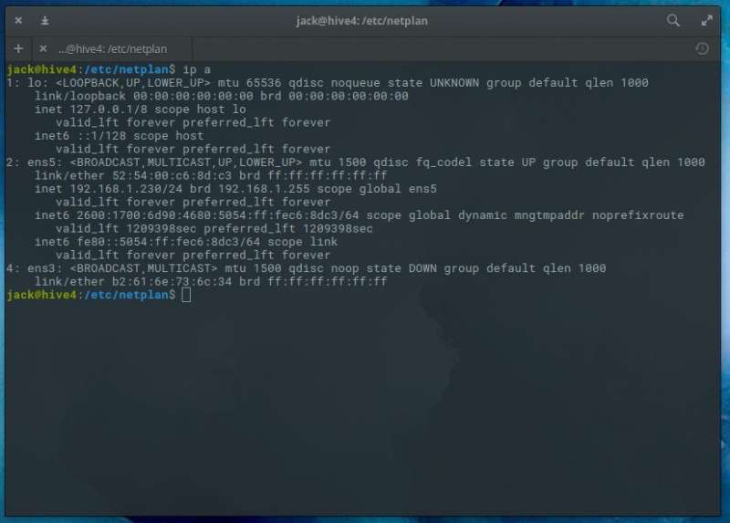Netplan 应该会成功配置 DHCP 服务。这时你可以使用 ip a 命令得到动态分配的地址,然后重新配置静态地址。或者,你可以直接使用 DHCP 分配的地址(但看看这是一个服务器,你可能不想这样做)。