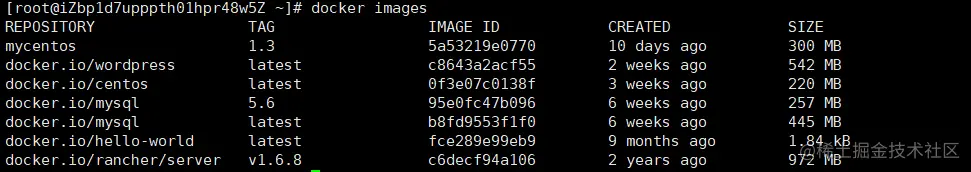 执行docker images 命令,如下图所示: