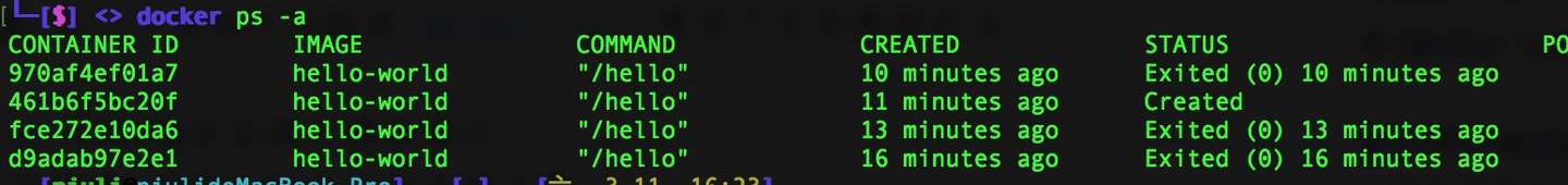 容器是应用的实例,使用docker create创建一个容器,使用docker start启动一个容器,另一个简单方式就是docker run,等价于先创建再启动.