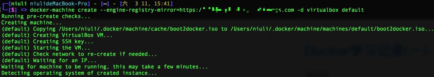 这里要注意,阿里云给的命令是创建一个名字为default的主机,安装后自带了一个default,所以先运行docker-machine rm default删除默认主机.