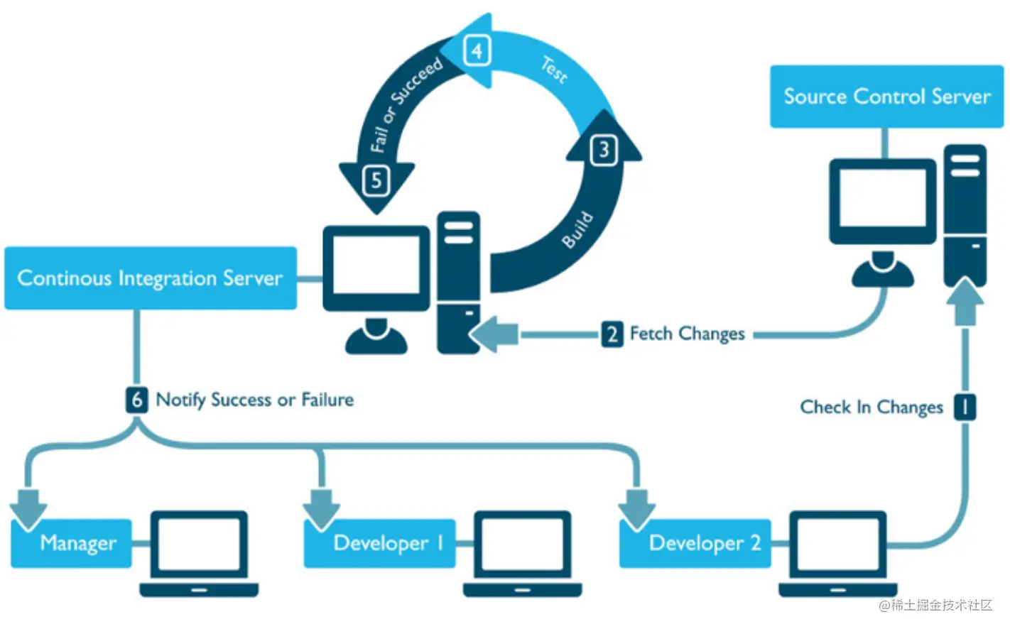CI/CD 中的“CI”始终指持续集成,它属于开发人员的自动化流程。