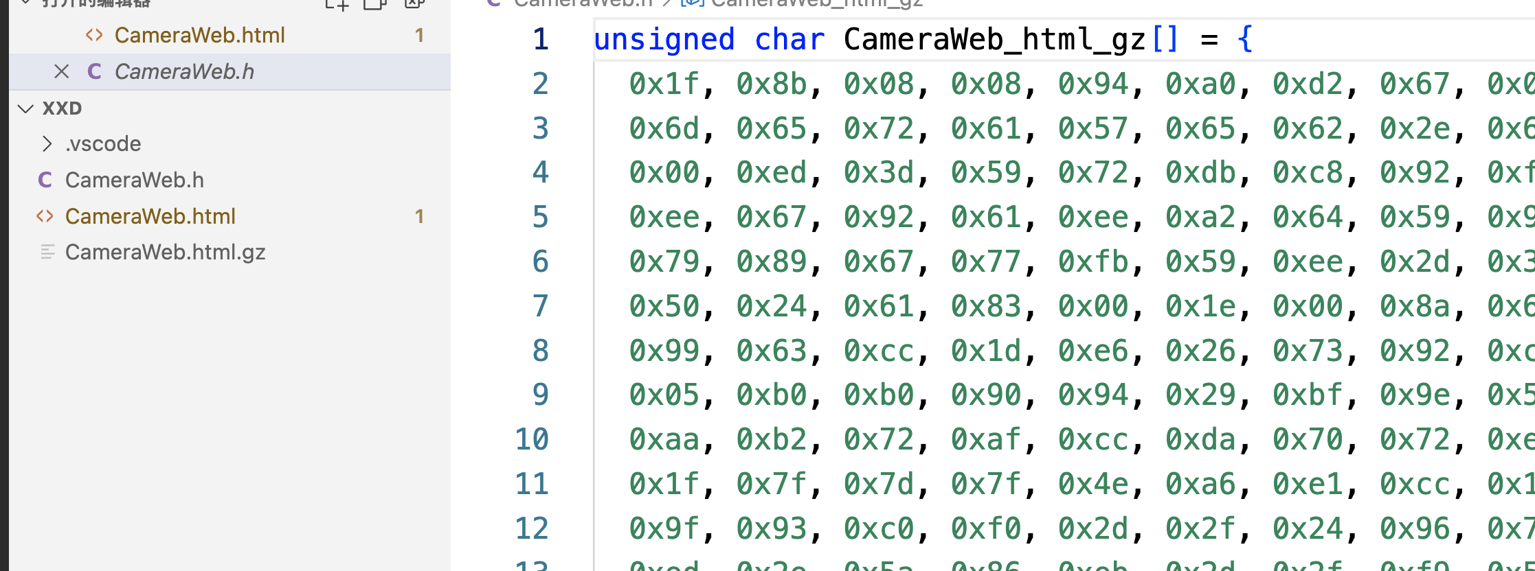 xxd -i CameraWeb.html.gz > CameraWeb.h