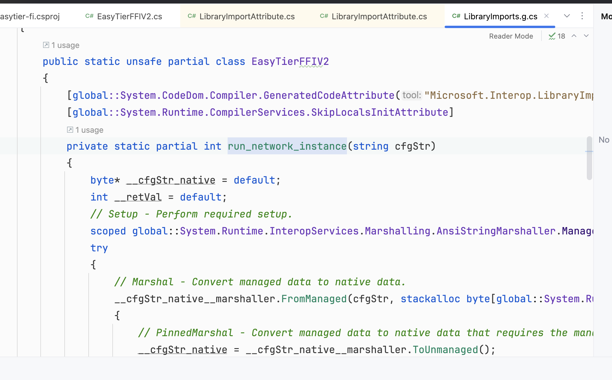实际上easytier-ffi 示例代码中有一个关于csharp 操作的,只是是基于早期的DllImport 模式,实际上微软只是比较建议大家尽可能使用LibraryImport模式,一个是辅助进行代码生成,一个是内部进行了一些调用的安全处理(内部使用了一些unsafe操作,构建的时候注意开启unsafe)