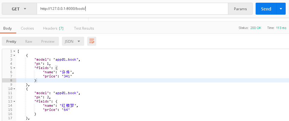 拿到的数据如下,造成的问题就是对于结果来说我们不可控,它会自动加上model、pk,会增加数据的传输量