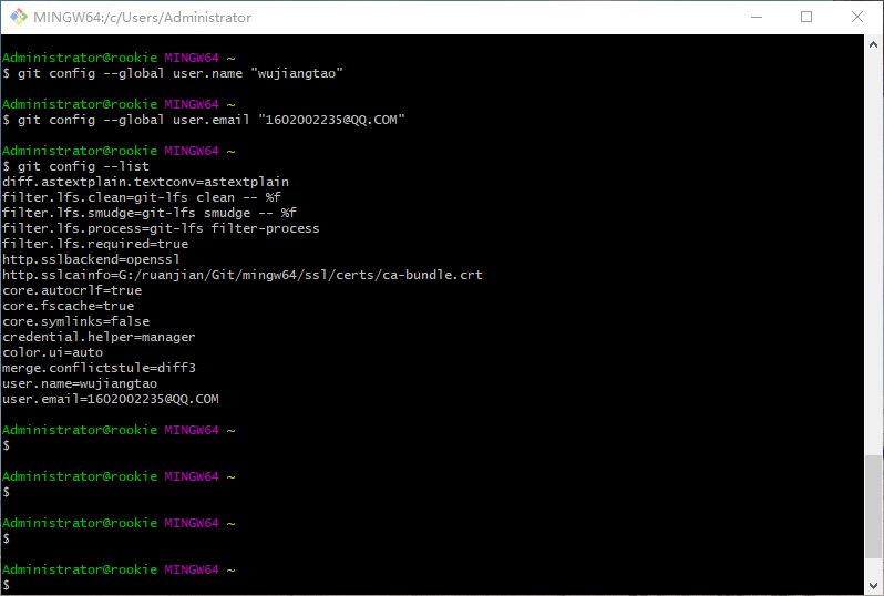 在开始使用 Git 之前,你需要配置 Git。在命令行工具中运行以下每行,确保所有选项都已被配置好。