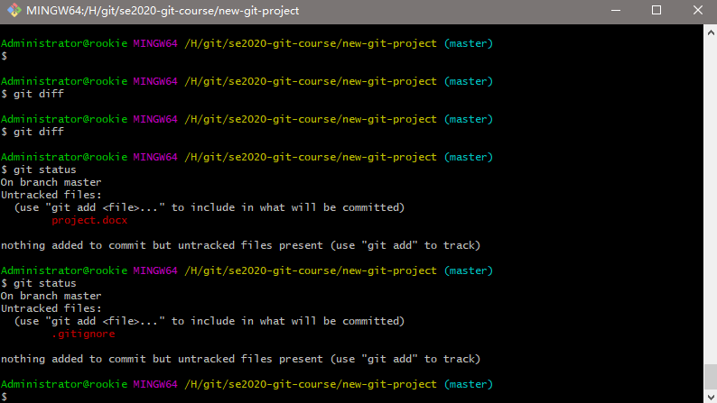 我们用"project.docx"文件试一下。将以下行添加到 .gitignore 文件中:
