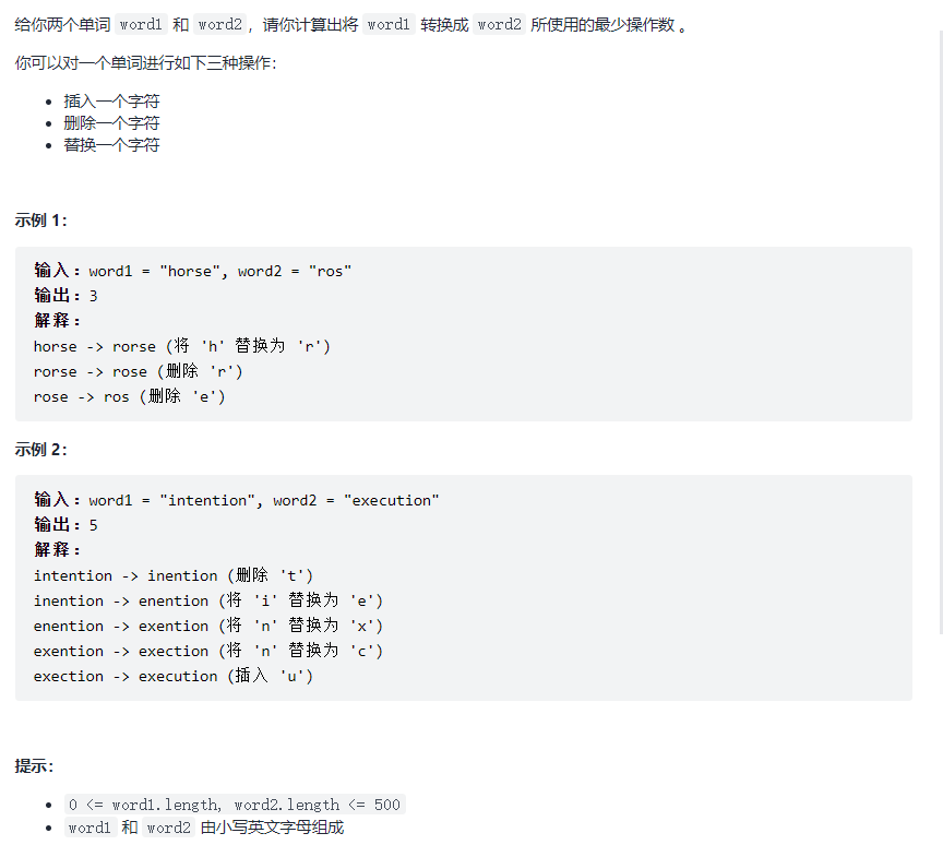 ①:暴搜,对于 word1[i] 与 word2[j],如果二者不相等,有三种方式,即题目所说的那种方式。