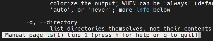 按回车键可以查看更多未加载出的页面,下框输入Q 推出当前页,回到‘ls’指令的用法界面
