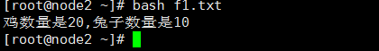 #!bin/bash #i代表鸡,g代表兔 for i in {1..30} ; do for g in {1..30} ; do if [ $[2*i + 4*g] -eq 80 -a $[i + g] -eq 30 ] ; then echo "鸡数量是$i,兔子数量是$g" fi done done ~
