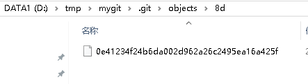 其实这就是执行 git add 命令后生成的一个对象,git将对象的 hash 值的前两位 8d 作为文件夹名,其余38位作为文件名保存。