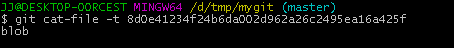 git cat-file -t 8d0e41234f24b6da002d962a26c2495ea16a425f 命令查看对象类型