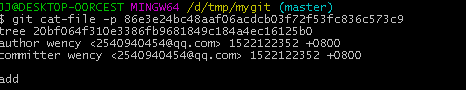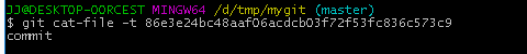 查看他的类型是 commit,这个对象其实就是提交对象 (commit object)。
