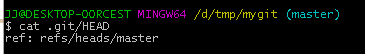 我们发现这个引用和别的引用不一样,实际上他是指向其他引用的一个指针。当我们执行 git checkout <branchName> 命令时,实际上是将 HEAD 文件中的引用改为了需要检出分支的引用。