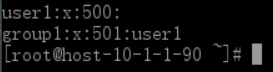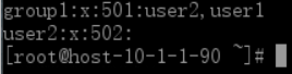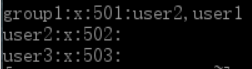 至此,group1组中有user1,user2两个用户,用命令cat /etc/group查看/etc/group文件如下图: