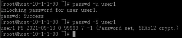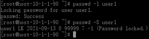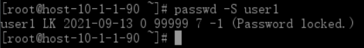 在创建完用户user1后,没给用户passwd口令时,账户默认为禁用状态: