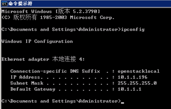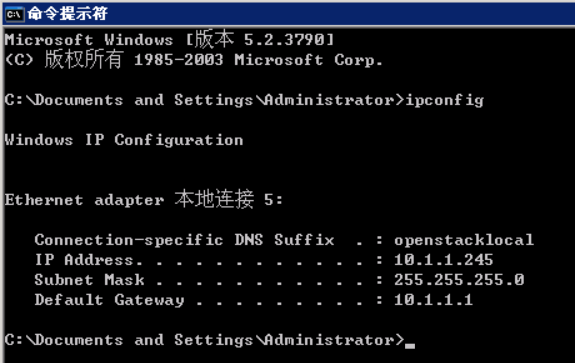 1、远程桌面方式登录到CA服务器,在CMD下查看本机IP地址: