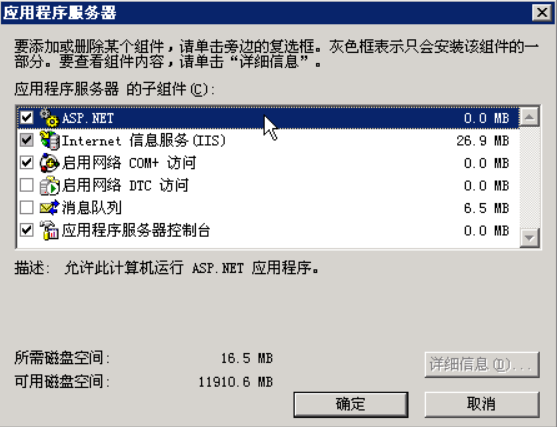 双击“应用程序服务器”,选中“ASP.NET”与“Internet信息服务(IIS)”,如下图: