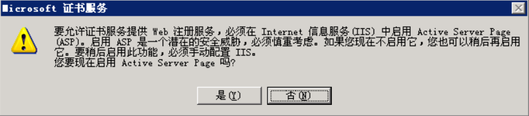 在安装完成后会提示启用Active Server Page,点击“确定”
