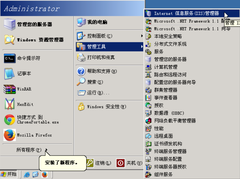 安装完成后会发现有管理工具中多了“Internet信息服务(IIS)”,找到并打开:
