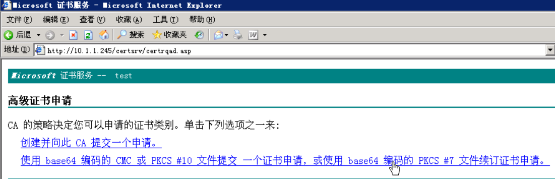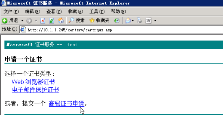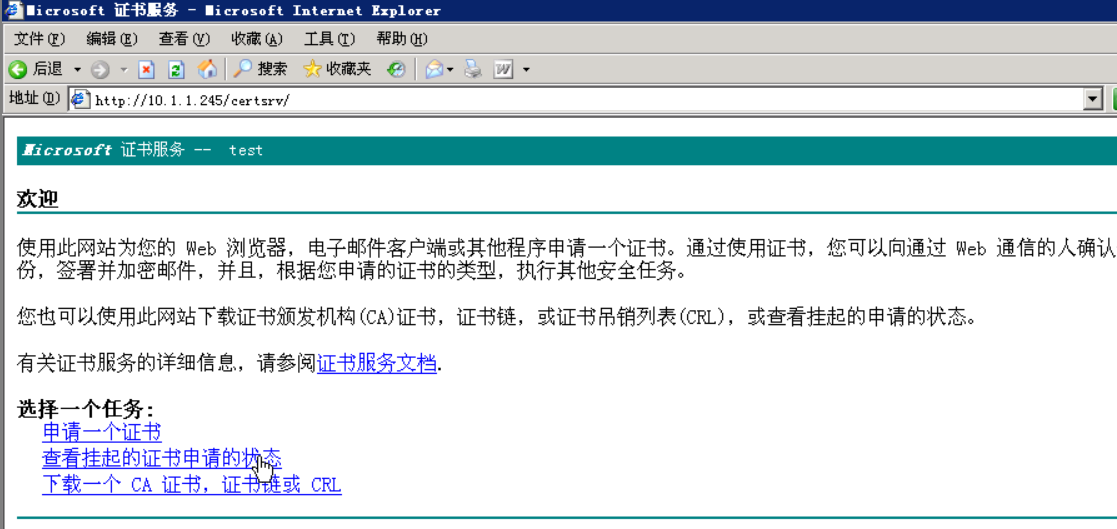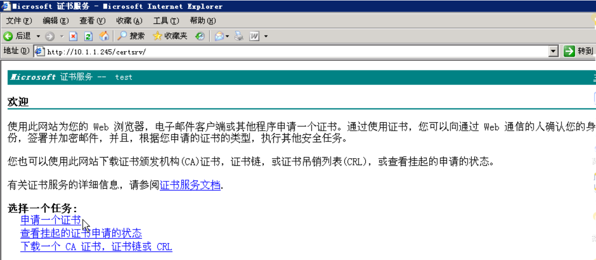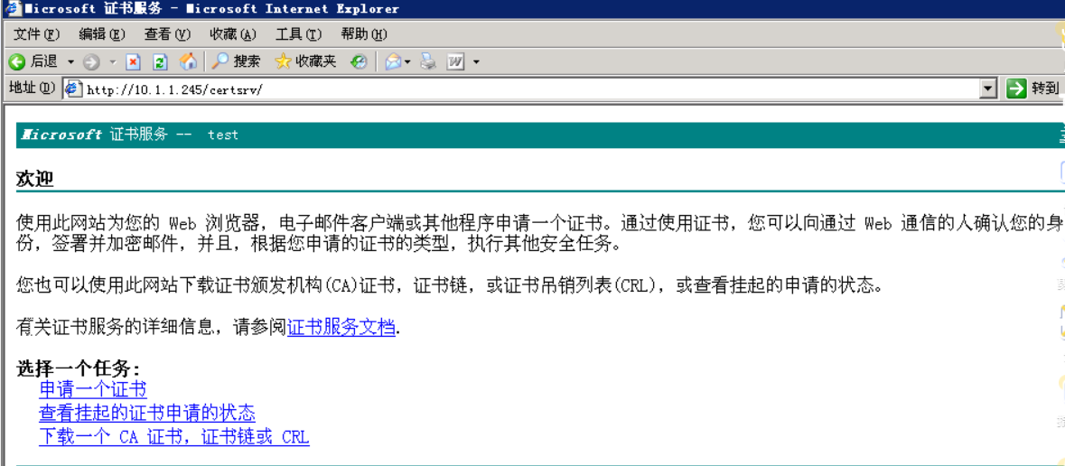 打开浏览器输入 http://10.1.1.245/certsrv/ 可以浏览证书服务器
