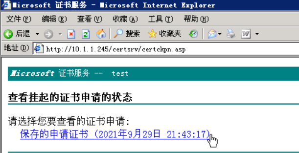注:在本例中CA服务器IP为10.1.1.245,但在做实验过程中,IP可能会出现变动,要记住自己CA的IP,在后面实验过程中填写自己的IP,否则实验可能失败。