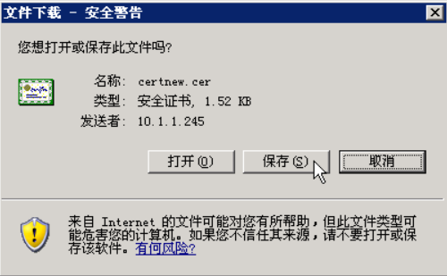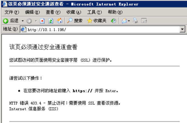 输入https://10.1.1.196 (按照实际情况),会出现一个证书安全问题的确认,单击“是”,进行浏览: