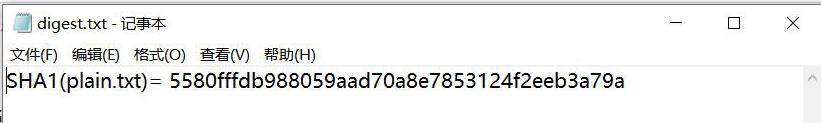 2、计算plain.txt的哈希值,输出到文件 digest.txt。