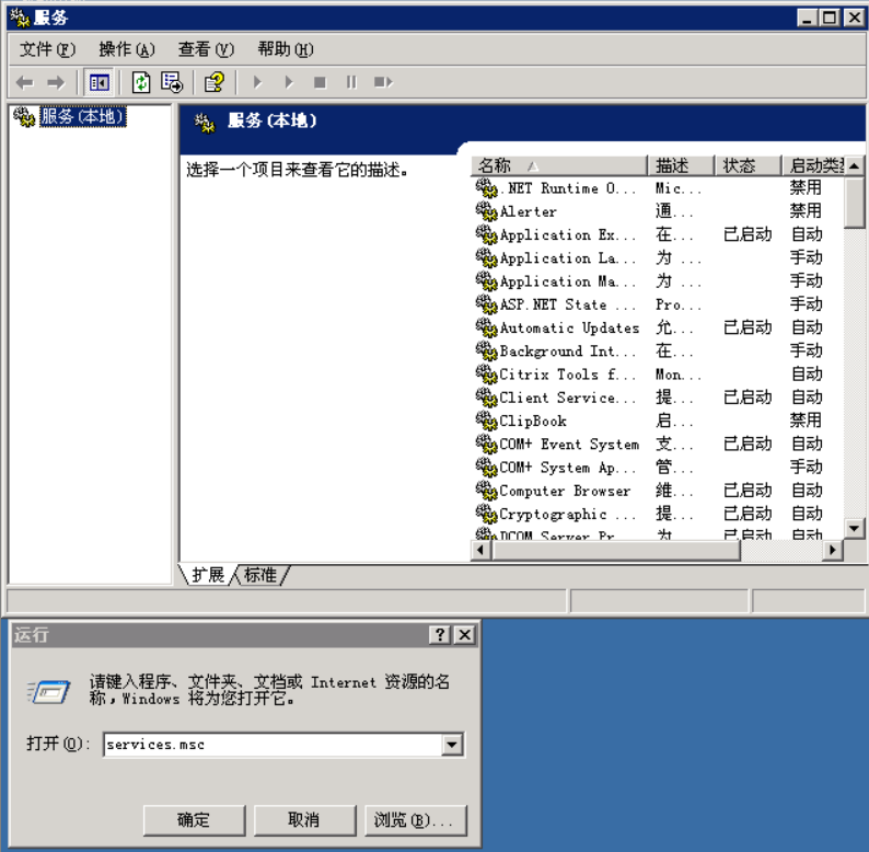 首先打开运行,输入tlntsvr /service,启动Telnet服务程序,再打开运行,输入services.msc,打开服务管理程序。