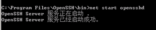 最后执行 net start opensshd,开启ssh服务。