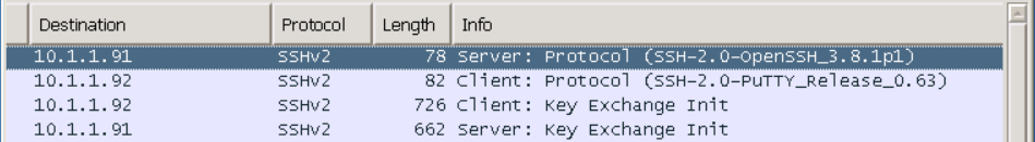 可以看到,server和client使用的软件版本,然后是密钥交换等信息